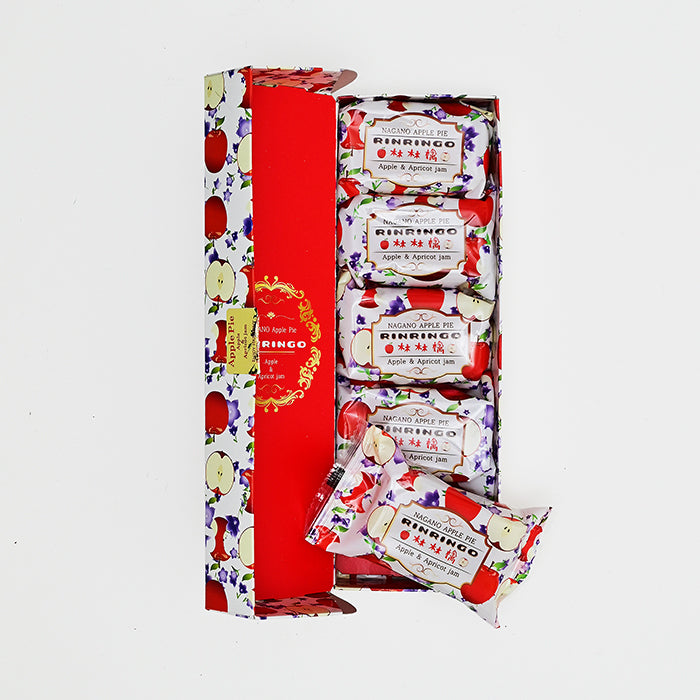 りんごジャム(国内製造)、パイ生地(小麦粉、マーガリン(大豆を含む)、バター、卵黄、食塩)、砂糖、液全卵、小麦粉、ファットスプレッド、液卵白、あんずジャム、油脂加工食品、ショートニング、水あめ、還元水あめ、マルチトール、食塩/乳化剤、ベーキングパウダー、ゲル化剤(ペクチン:オレンジ由来)、甘味料(ソルビトール)、着色料(カラメル、カロテン)、酸味料、酸化防止剤(V.C)、保存料(ソルビン酸K)、香料、乳酸Ca