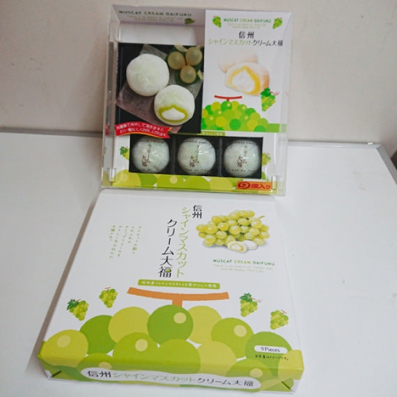 マスカット餡とふわふわのホイップクリームを優しく包んだ大福です