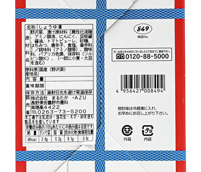国産野沢菜野沢菜キムチ 信州長野のお土産国産野沢菜をにんにく、はちみつ、唐辛子と共に漬け込んだ旨味と辛さが特徴の野沢菜漬け内容量160g賞味期限製造日より約11ヶ月保存方法直射日光を避け常温で保存下さい原材料野沢菜、漬け原材料(異性化液糖、アミノ酸液、にんにく、豆板醤、醤油、トマト、砂糖、はちみつ、香辛料、唐辛子、食塩)、調味料(アミノ酸等)酸味料、パプリカ色素、保存料(ソルビン酸K)、(原材料の一部に小麦、いか、大豆、鶏肉、ごまを含む)製造工場では小麦、えび、落花生、乳、かにを含む製品も生産しています。