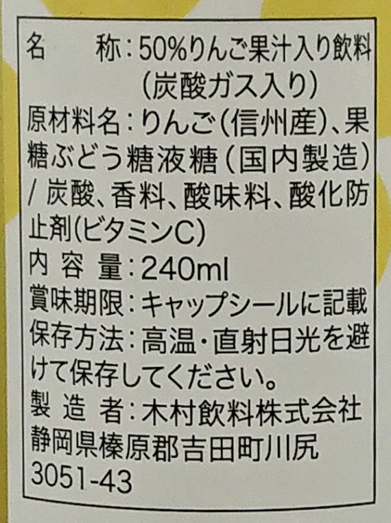 信州産林檎果汁使用。林檎の程よい酸味と濃厚な甘さを生かしたフレッシュ感のある炭酸飲料です