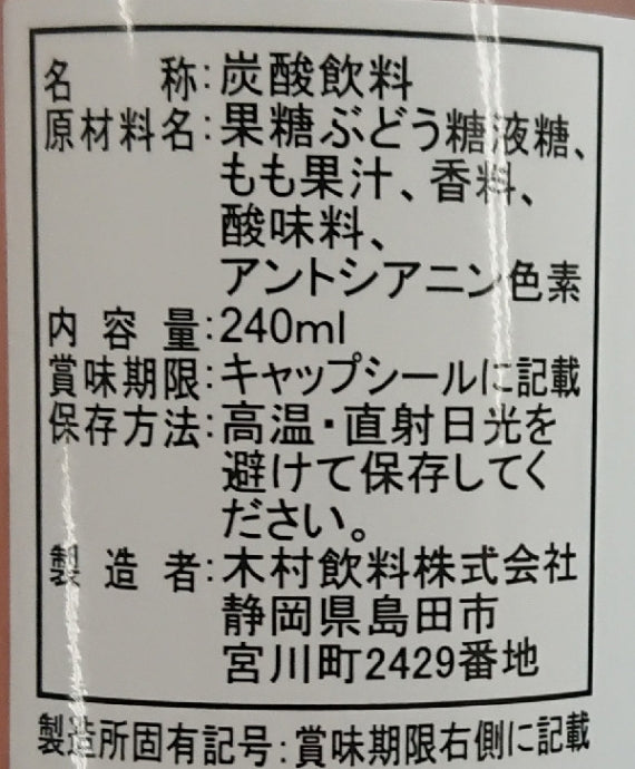 完熟した山梨県・長野県産もも果汁を使用した桃の炭酸飲料サイダーです