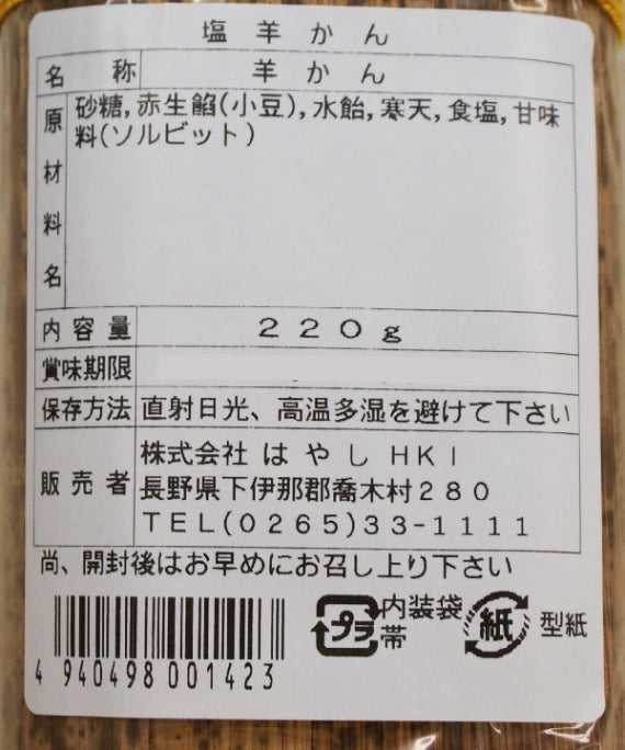 大鹿村で採れるミネラル豊富な山塩を使用した羊羹です。