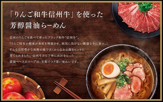 信州牛の旨味を引き出し丁寧に仕上げた味わい深い芳醇スープ。昔ながらのやさしい風味の醤油味に仕立てた信州限定ラーメンです