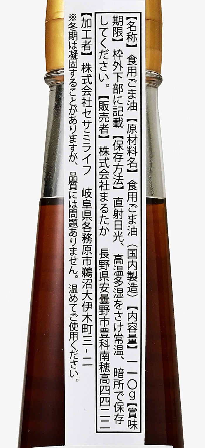 手詰め極上胡麻油(信州長野県のお土産 お菓子 お取り寄せ ギフト)素材を活かしたこだわりの一品、香り高い極上の胡麻油。1本1本を丁寧に手詰めをし、素材を活かしたこだわりの胡麻油に仕上げています。香りの違いをお楽しみください。名称/食用ごま油内容量/110g賞味期限/製造日より365日保存方法/直射日光及び高温多湿を避け常温、暗所で保存ください原材料/食用ごま油(国内製造)(信州長野のお土産 お取り寄せ ご当地 グルメ ギフト おみやげ 長野県 長野土産 長野お土産 ごま油 胡麻油 通販)