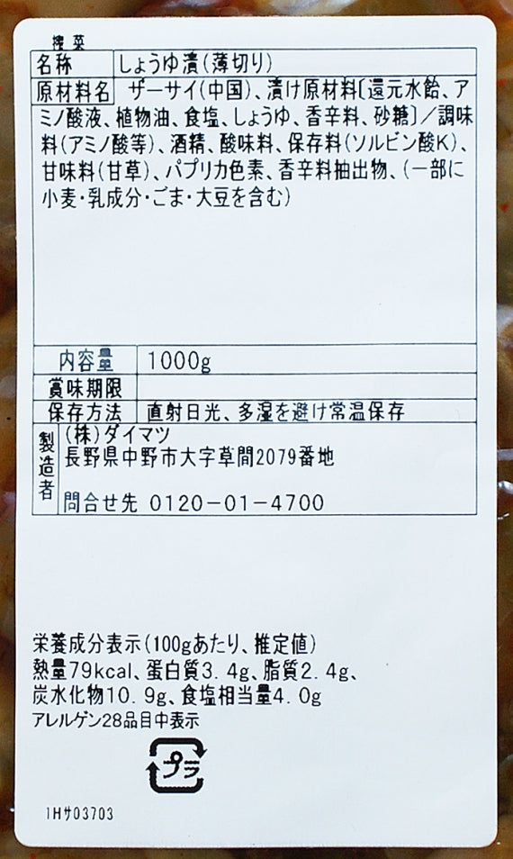 (業務用)搾菜 信州長野のお土産お惣菜名称/しょうゆ漬(薄切り)内容量/1,000g賞味期限/製造日より180日保存方法/直射日光、多湿を避け常温保存ください原材料/ラベル添付(信州長野県のお土産 お取り寄せ ご当地 グルメ ギフト おみやげ 信州のお漬け物 漬物 しょうゆ漬け 醤油漬け物 搾菜 ザーサイ 長野土産 長野お土産 通販)