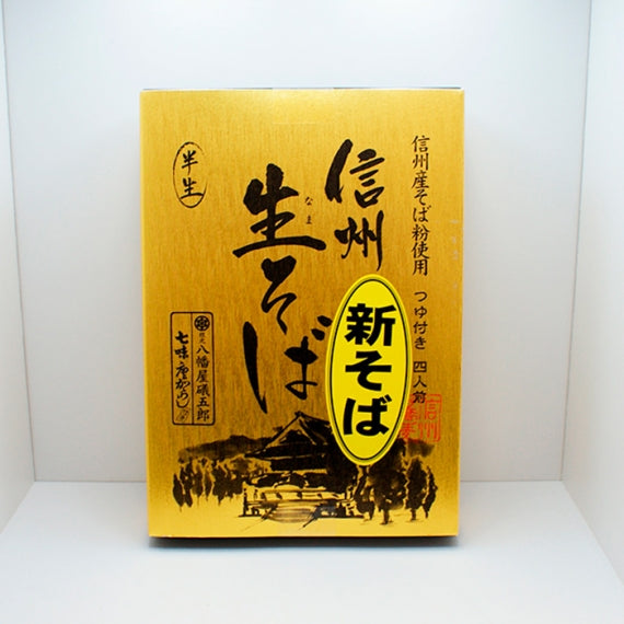 (新そば)信州産そば粉使用つゆ付き4人前信州生そば半生 信州長野のお土産名称/半生蕎麦内容量/540g(めん360g)賞味期限/製造日より約4ヶ月保存方法/直射日光を避け、常温で保存してください。原材料/めん:そば粉、小麦粉、小麦蛋白、食塩、山芋粉/ソルビット、酸味料、増粘多糖類、(一部に小麦、そば、やまいもを含む)つゆ:しょうゆ、糖類(砂糖、ぶどう糖果糖液糖)、みりん、食塩、かつお節エキス、かつお節/調味料(アミノ酸等)、カラメル色素、酸味料、(一部に小麦、大豆、豚肉を含む)薬味:唐辛子、陳皮、ごま、麻種、紫蘇、山椒、生姜、(一部にごまを含む))製造工場では卵、乳成分を含む製品も生産しています。(信州長野のお土産 お取り寄せ ご当地 グルメ ギフト 土産 おみやげ 長野県 長野土産 長野お土産 通販 信州蕎麦 信州そば 半生そば 半生麺 日本そば 日本蕎麦 ソバ)