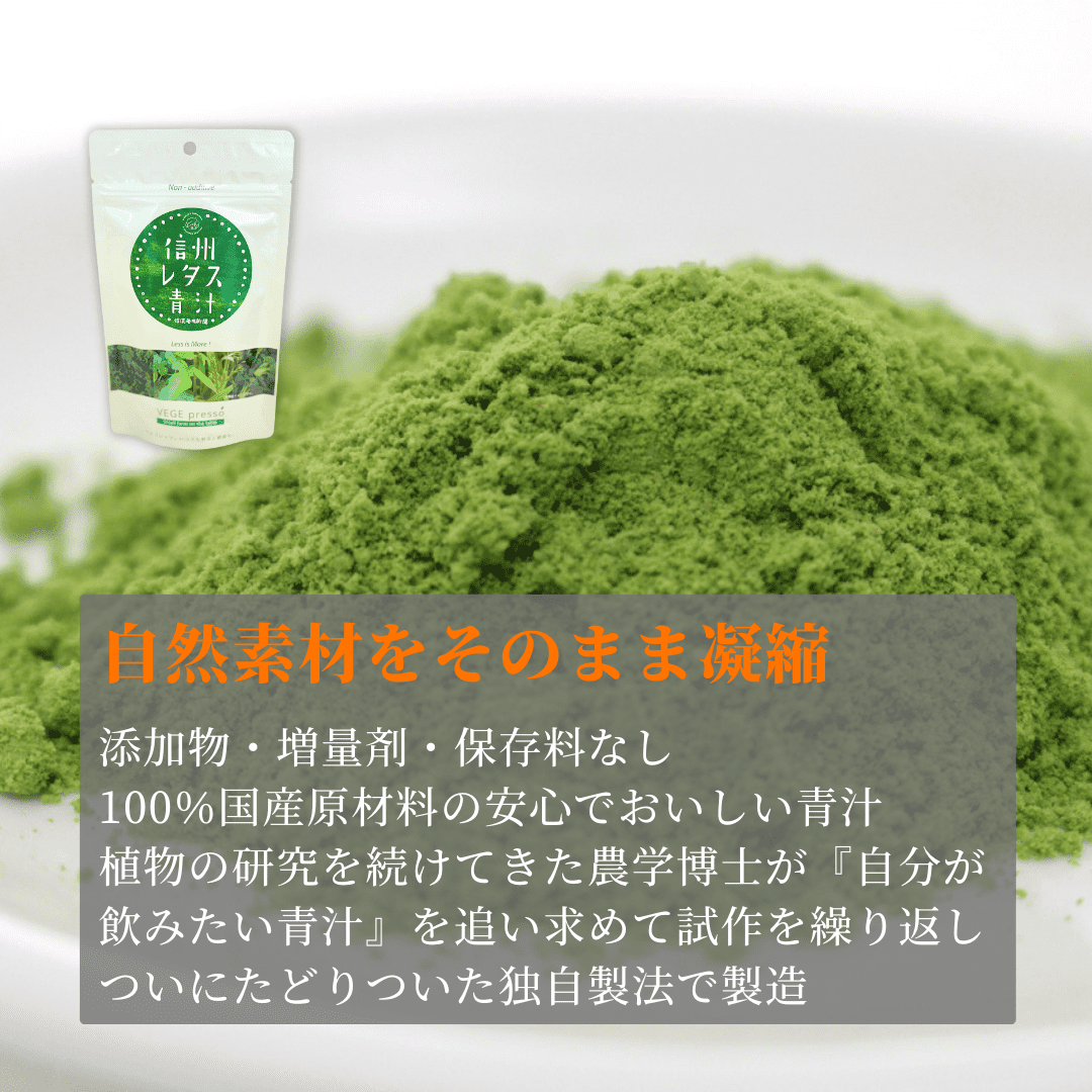 大麦若葉粉末、てん菜糖、緑茶粉末、大豆粉末、玄米粉、レタス、ブロッコリー粉末、ほうれん草粉末(全て国産)