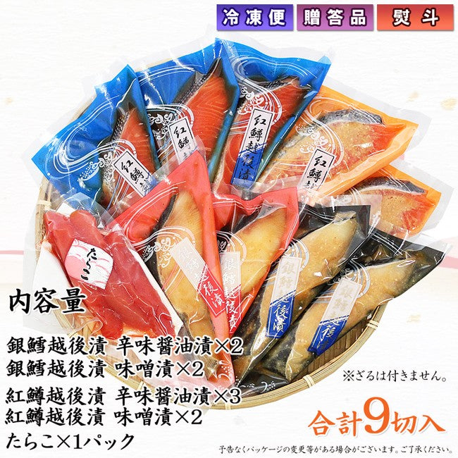 銀鱈辛味醤油漬2パック 銀鱈味噌漬2パック 紅鱒辛味醤油漬3パック 紅鱒味噌漬2パック たらこ1パック
