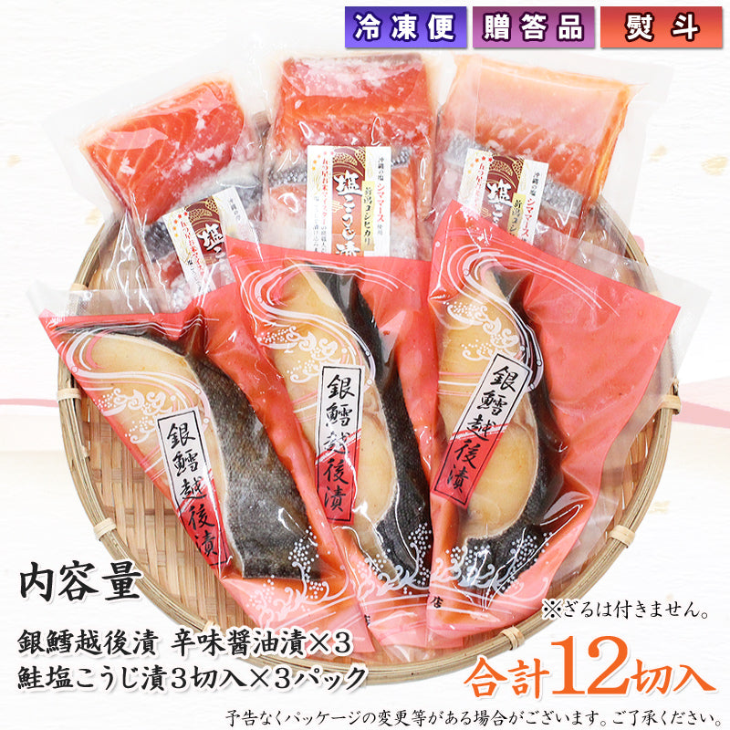 銀鱈辛味醤油漬×3パック 鮭塩こうじ漬3切入×3パック