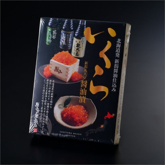 鮭卵(北海道)、醤油(大豆・小麦を含む、遺伝子組み換え無し)、発酵調味料 (アミノ酸等)、酒、かつおエキス