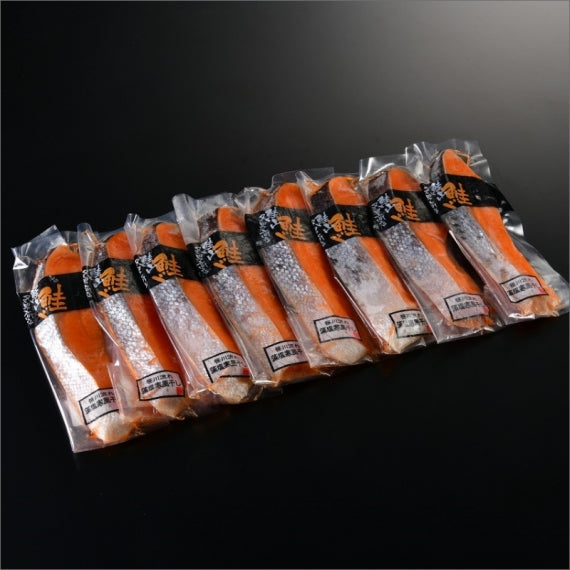 厳選した鮭・サーモンを全国から選りすぐりの原料を調達し、新潟の産物を使用した調味料で味付け致します。
