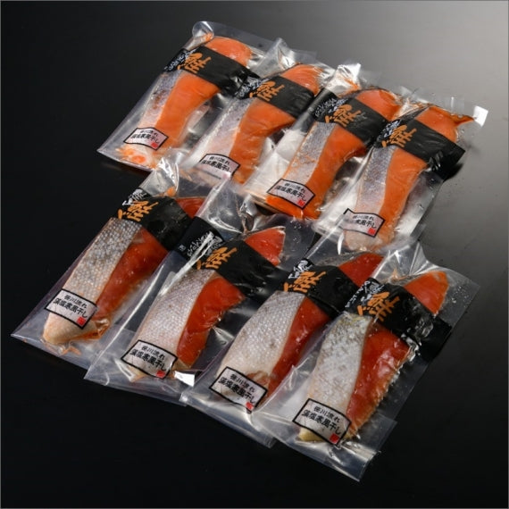 銀鮭天然藻塩寒風干し約100g×4切、天然紅鮭藻塩寒風干し約90g×4切