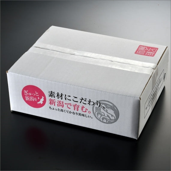 厳選した鮭・サーモンを全国から選りすぐりの原料を調達し、新潟の産物を使用した調味料で味付け致します。