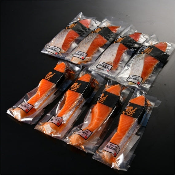 紅鮭寒風干し約90g×4切、トラウトサーモン寒風干し約100g×4切
