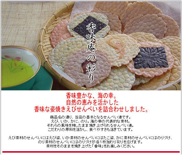 本場愛知のお煎餅処 香味庵本店 油や化学調味料を練り込まない 風味豊かな本格素焼きえびせんべい♪