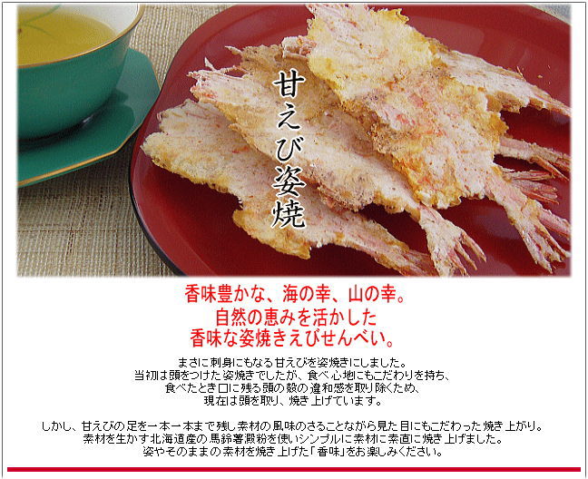 他では味わう事の出来ないえびせんべいの味わいをお楽しみください。
