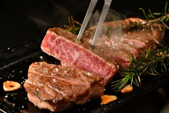 松阪牛のサーロインはやわらかく甘みがあり、ジューシーな霜降りが特徴です。