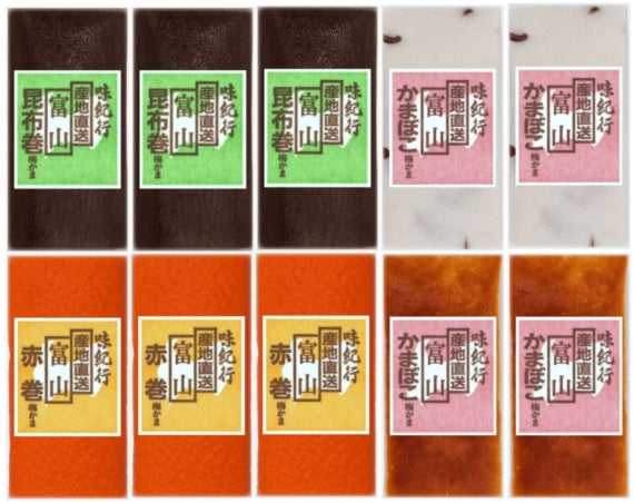 昆布巻115g×3本、赤巻115g×3、焼角115g×2、しぐれ115g×2