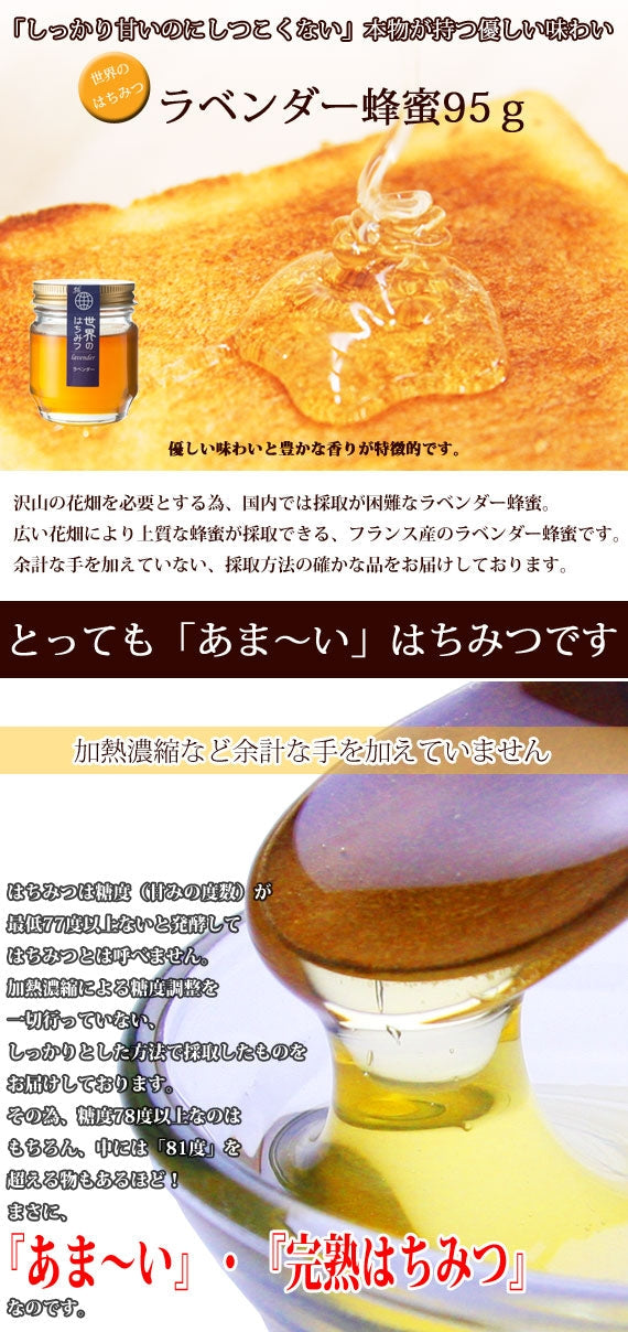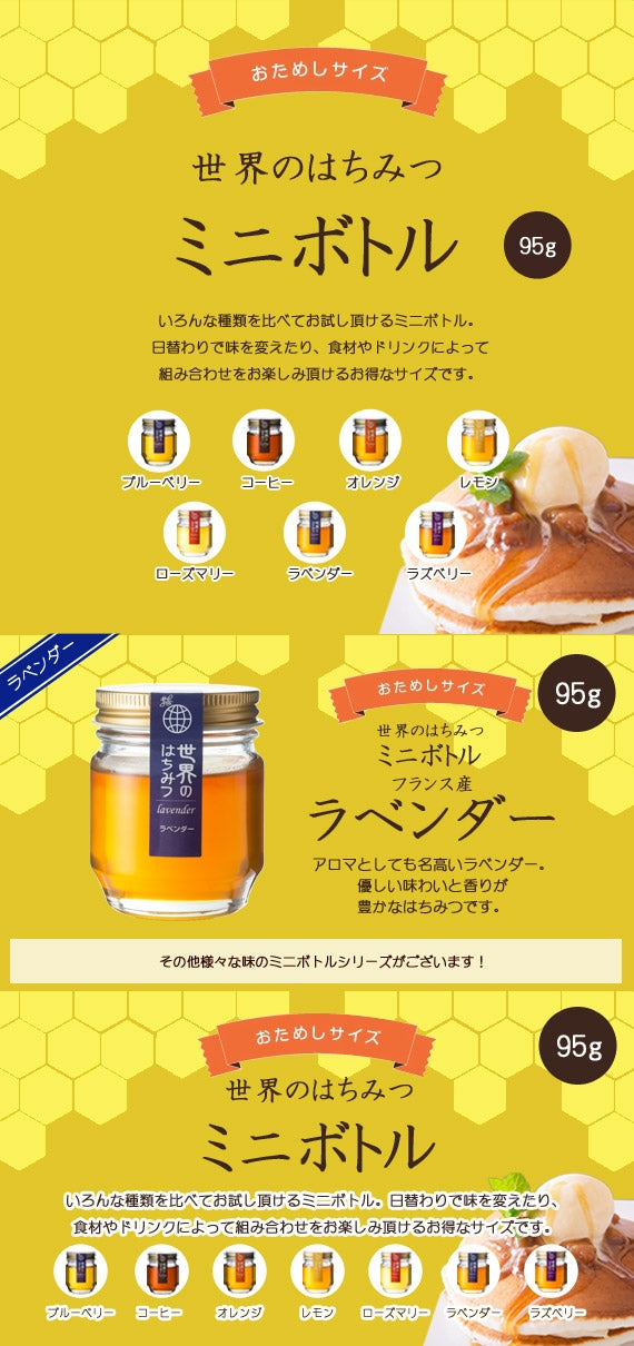 天然100%・・・あたりまえのハチミツをお届けします。大場養蜂園では、日本で採取が困難な珍しい天然はちみつをご紹介、お届けしております。無添加、無精製、非加熱濃縮のハチミツは、花の香りあふれる、奥深い味わいとすっきりとした後味です。ミツバチたちが運んでくれた「自然からの恵み」をご賞味ください。