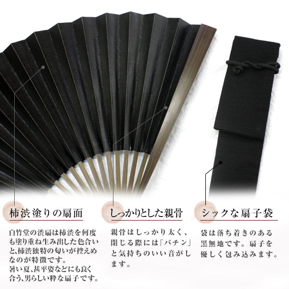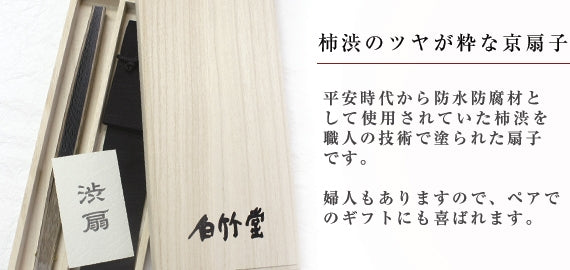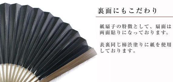 白竹堂の渋扇は柿渋を何度も塗り重ね生み出した色合いと、柿渋独特の匂いが控えめなのが特徴です 。
