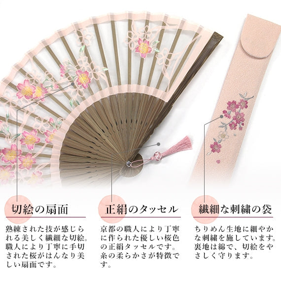 切り絵の職人が一本一本手作業で切り出し描いた日本の花が扇子になりました。