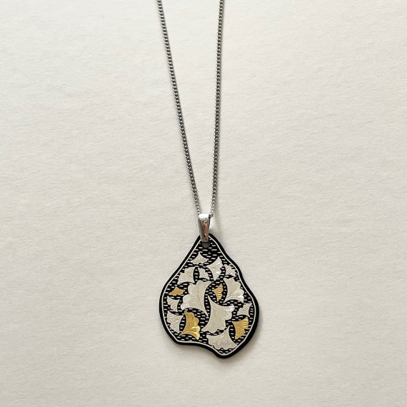 純金、純銀を使用し表は京都の伝統的な技法を用いた桜柄、裏はモダンな幾何学柄を打ち込んでいます。