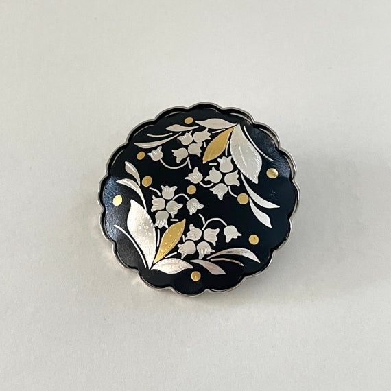 純金、純銀でスズランの花と葉を装飾しています。