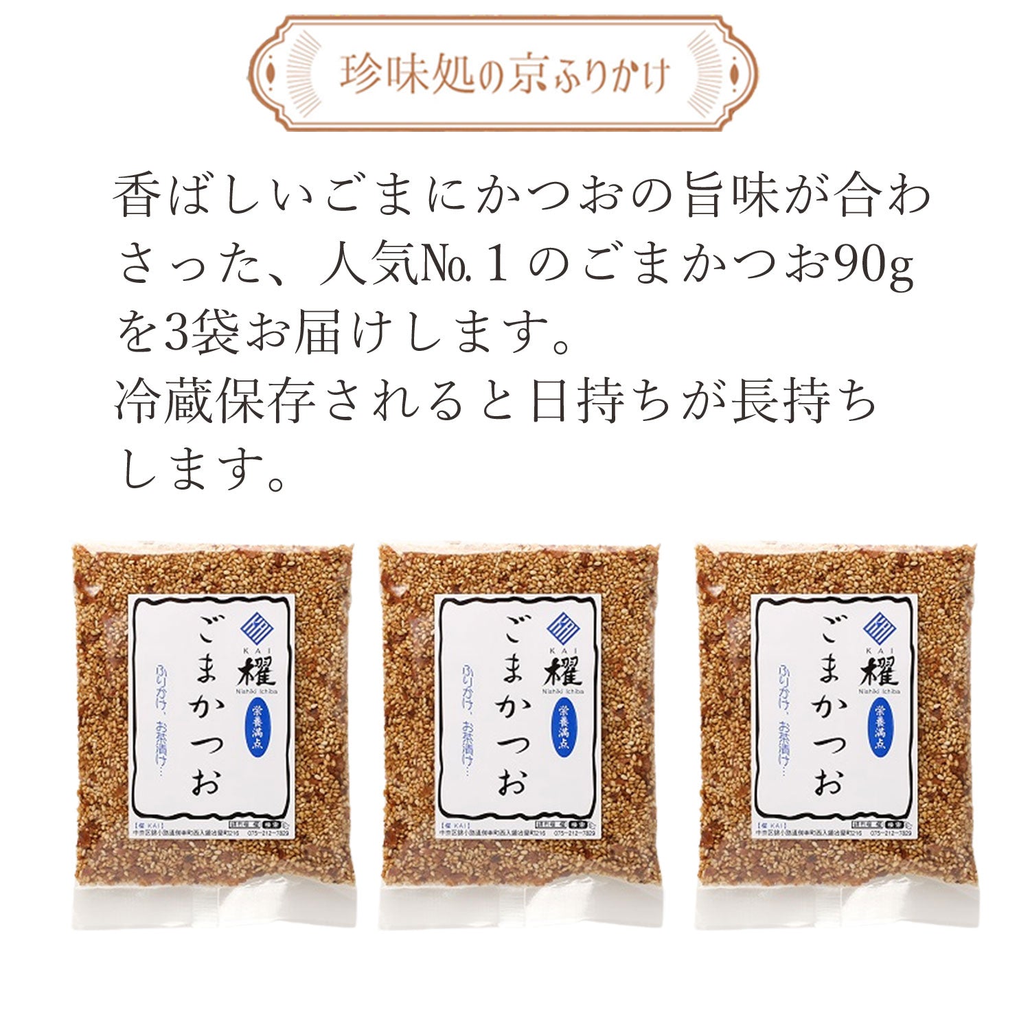 おもてなしセレクション2021金賞受賞 ”珍味処の京ふりかけ」”衝撃のごま「ごまかつお90g」3袋