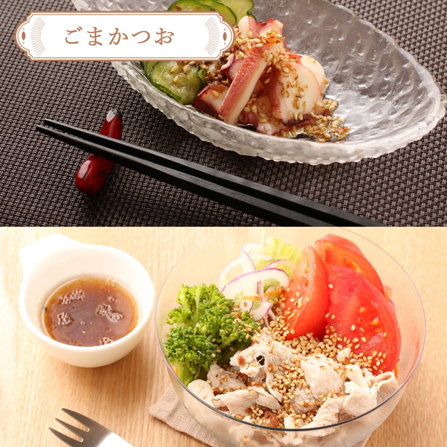 いりごま(国内製造)、かつお削り節、醤油、食塩、ぶどう糖、砂糖、発酵調味料、酵母エキス、香辛料/調味料(アミノ酸等)、酸化防止剤(V.E)、甘味料(ステビア)