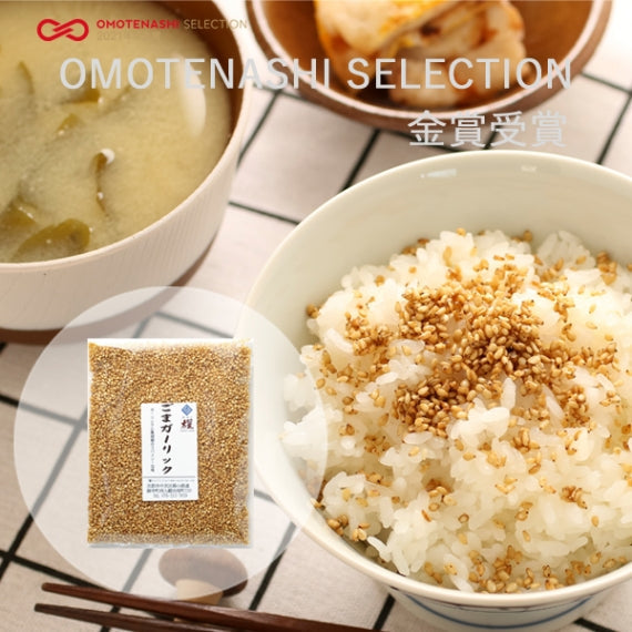 いりごま(国内製造)、おろしにんにく、糖類(砂糖、オリゴ糖)、食塩、たん白加水分解物、黒こしょう/調味料(アミノ酸等)