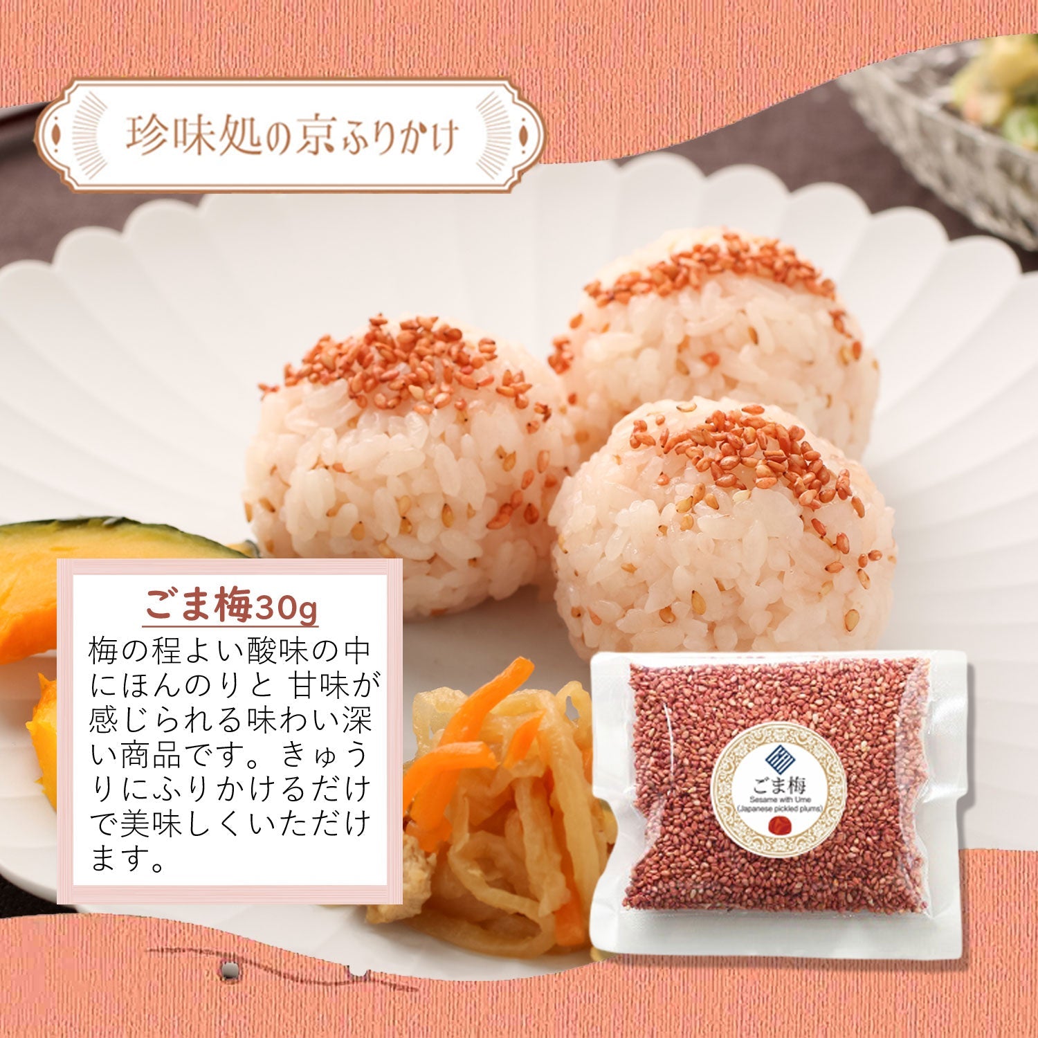 【ごま柚子胡椒】いりごま(国内製造)、柚子こしょう(唐辛子、柚子表皮、食塩)、でん粉分解物、柚子こしょう粉末/調味料(アミノ酸等)【ごまゆず】いりごま(国内製造)、たん白加水分解物、ゆず果汁(ゆず(高知県産))、糖類(砂糖、オリゴ糖)、食塩/調味料(アミノ酸)、香料、クチナシ色素【ごま梅】いりごま(国内製造)、食塩、糖類(砂糖、オリゴ糖)、発酵調味料、かつおエキス、梅肉(梅(紀州産))/調味料(アミノ酸等)、酸味料、ベニコウジ色素、赤キャベツ色素、香料