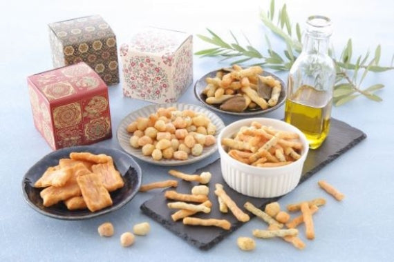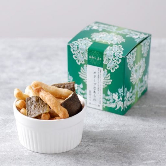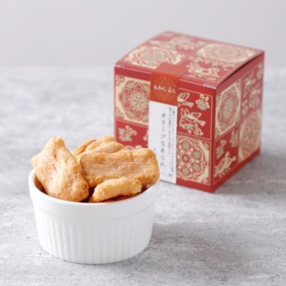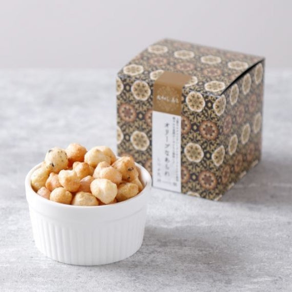 国際オリーブオイルコンテスト金賞受賞のエキストラバージンオリーブオイルを、昔ながらの製法で作られたあられにまとわせました。さっぱりとした後味ながら豊かな余韻とサクッと軽い食感はクセになる美味しさです。