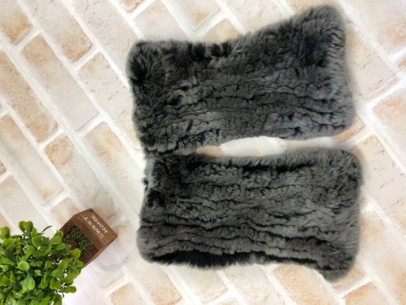 レッキスラビットファーアームウォーマーにもなるレッグウォーマー01.ブラックミックス