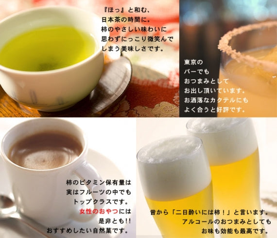 ウエット感を残した仕上がりで、噛むほどに柿の美味しさがお口に広がり、後味も大変上品で、柿本来の甘味がお口に残ります。