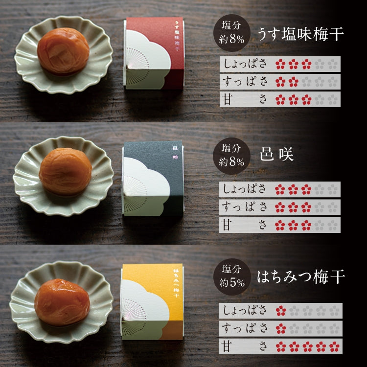 「うす塩味梅干」「邑咲(むらさき)」「はちみつ梅干」