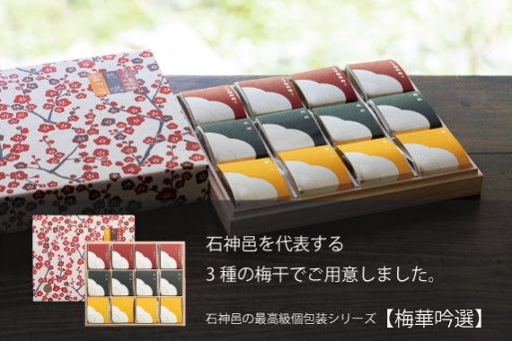 石神邑で収穫された梅の中から、特大粒の南高梅だけを選び、低塩仕立ての梅干に仕上げました。