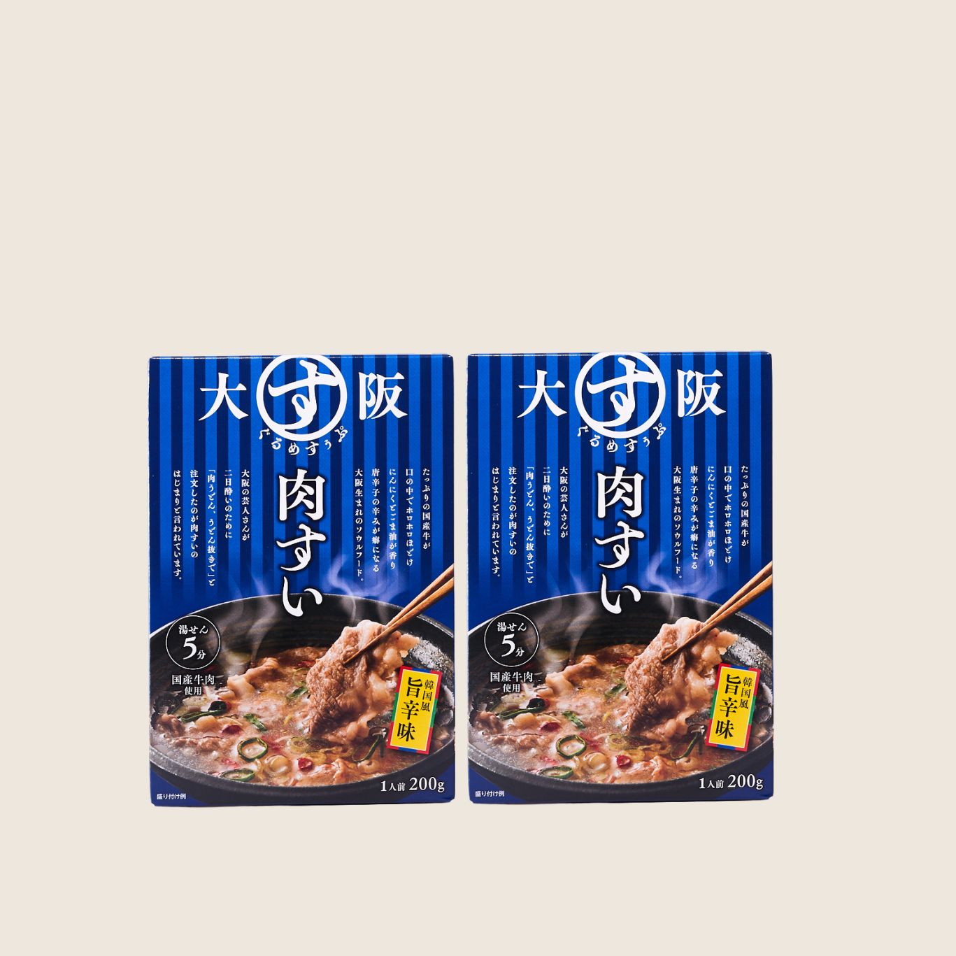 ・肉すい牛肉(国産)、調味だし(醤油、砂糖、食塩、本みりん、いわしぶし粉、ふし(そうだかつお削りぶし、かつお、さば、そうだかつお)、たん白加水分解物、昆布、酵母エキス、醸造酢)、かつおエキス、砂糖、食塩、(一部に小麦・牛肉・大豆・さばを含む)・韓国風旨辛味肉すい牛肉(国産)、煮干しだし、本みりん、醤油、ごま油、おろしにんにく、豆板醤、食塩、赤唐辛子、酵母エキス、(一部に小麦・牛肉・大豆・ごまを含む)
