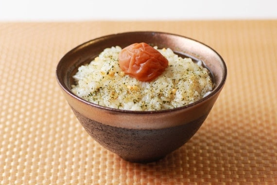紀州和歌山が誇る最高峰の国産香辛料「ぶどう山椒」を加え、万能「和風白だし」との融合で、さっぱりとした美味を引き出しています。ごはんに良く合う「勝喜梅」の「甘仕立て(塩分約10%)」を一粒まるごと一緒にお召し上がりください。