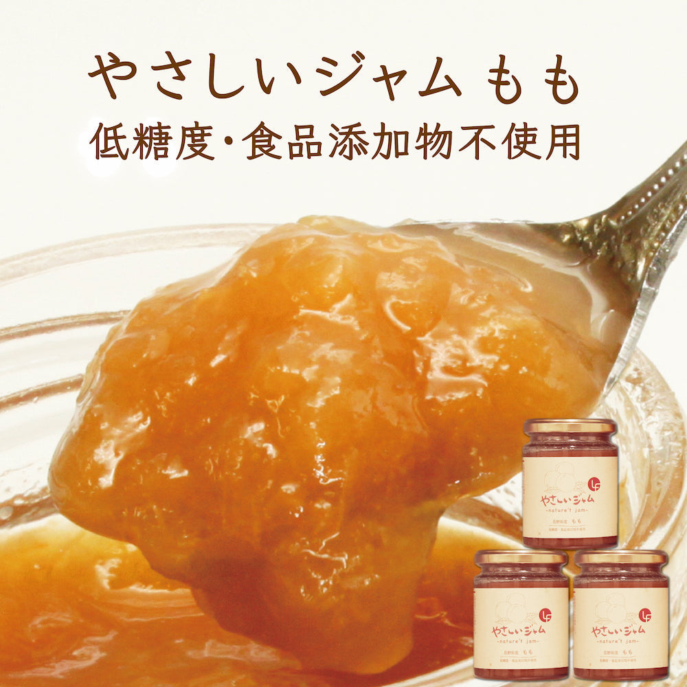 心を込めて作った果実味あふれる「やさしい」甘さのジャム。長野県産の桃を、長時間煮込み、おいしさを引き出しました。
