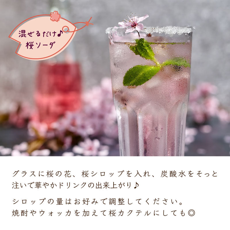 「お家でお花見♫」炭酸で割って爽やかなサクラドリンクがオススメ!お酒と割ればオリジナルサワーやカクテルに。冷酒・サワーに合います!