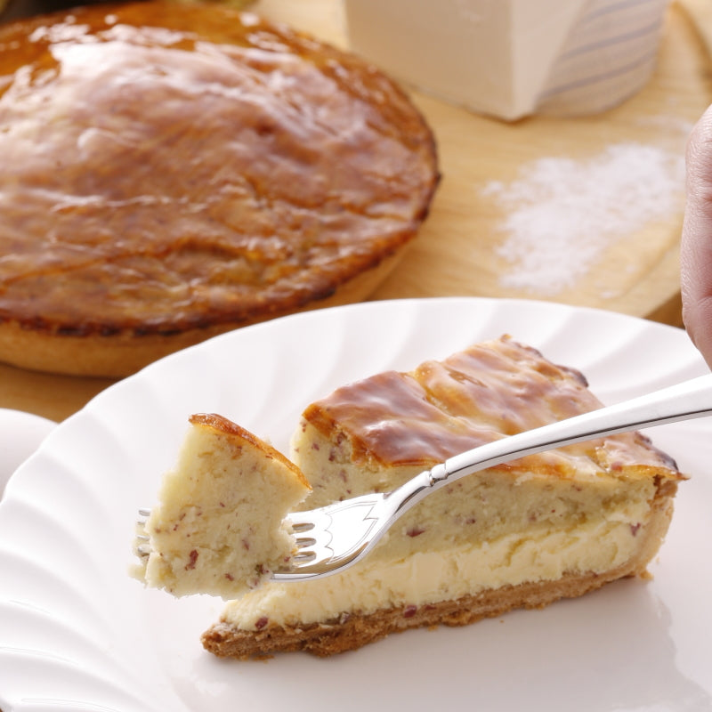 サクサクのタルト生地にレモンを利かせたニューヨークチーズケーキを流し込み、その上をサツマイモペースト生地で覆いサッと焼き上げました。濃厚なのに重くないニューヨークチーズケーキとスイートポテトのコラボレーションをお楽しみください。