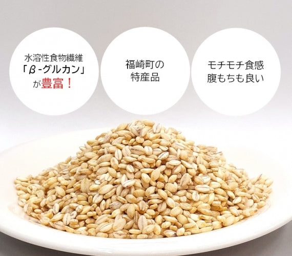 福崎町で昭和の初めごろから栽培されていた「もち麦」は、もちもちした食感が特徴で、当時、餅や団子として食べてられていました。その後一時途絶えていたもち麦の栽培は研究を重ねた後、昭和61年から再開し、福崎町の特産品として復活しました。現在では、麺やお茶、お菓子等のもち麦商品が発売されています。