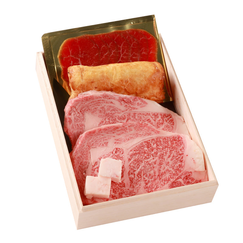 ・神戸牛 ロースステーキ 220g×2枚・神戸牛 ビーフパイ 220g(デミグラスソース付)×1・神戸牛 生ハム 50g×1○神戸牛 ビーフパイ牛肉(兵庫県)、パイ皮(小麦粉、バター、食塩)、ソテーオニオン、パン粉、鶏卵、でん粉、卵黄、食塩、香辛料、調味料(アミノ酸等)、(原材料の一部に卵・乳成分・小麦・牛肉・大豆を含む)○デミグラスソース牛すじ(国産)、鶏がら(国産)、野菜(玉ねぎ(国産)、人参、セロリ、にんにく)、仔牛骨、ブラウンルー、トマトペースト、加工黒糖、食塩、香辛料、調味料(アミノ酸等)、(原材料の一部に小麦・牛肉・鶏肉を含む)○神戸牛 生ハム牛肉(兵庫県)、食塩、砂糖、香辛料、調味料(アミノ酸等)、酸化防止剤(ビタミンC)、発色剤(亜硝酸Na)、(原材料の一部に牛肉を含む)