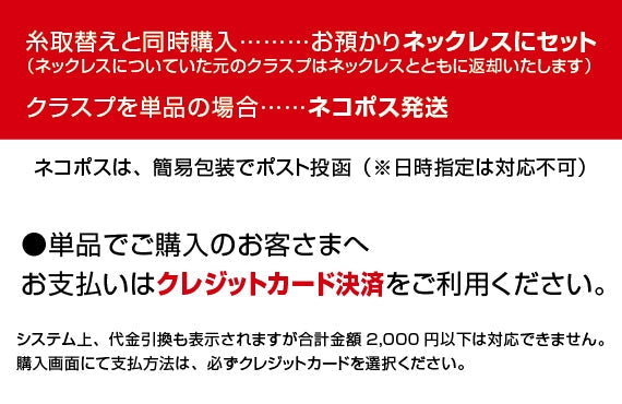 クラスプのみお買い求めのお客様には、ネコポスにてお届けいたします。