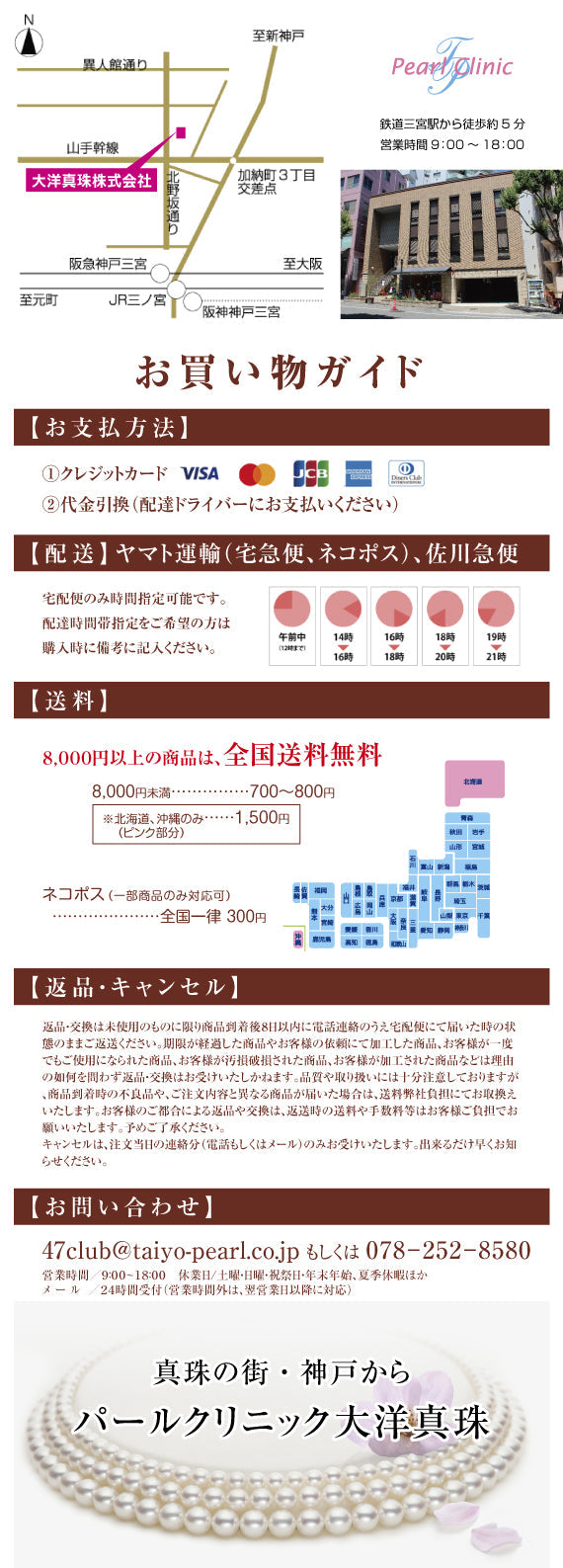 私たちは、真珠についてきちんとした知識・お手入れ方法をお客様に知っていただき、真珠の輝きを、永く、美しく保ち、愛着を持ってお使いただけるようにサポートいたします。