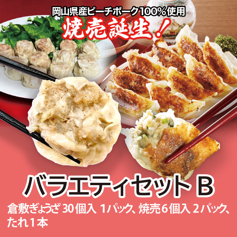 倉敷ぎょうざ30個入 1パック、焼売6個入 2パック、たれ1本