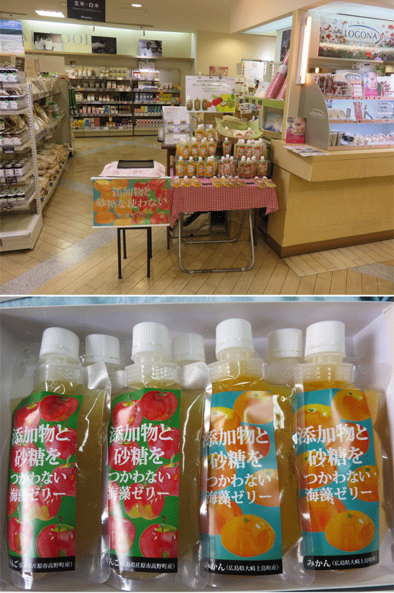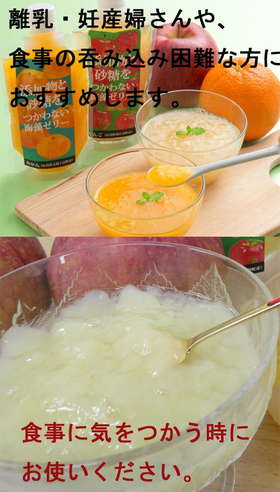 リンゴ果汁(広島県内産)、寒天、エキナセアエキス(ハーブ)、乾燥海藻(イギス、紅藻、その他)