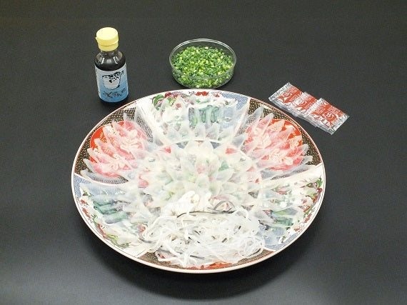 刺身(皮刺し含む)170g(美濃皿31㎝)、ぽん酢95ml×1、もみじおろし5g×3、きざみねぎ10g