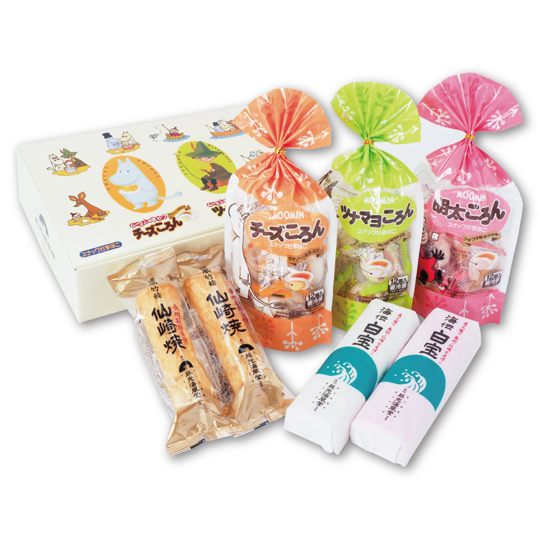 チーズころん・ツナマヨころん・明太ころん 各(13g×12個入)×1袋 / 仙崎焼ちくわ 105g×2本 / 焼き抜き蒲鉾白宝(赤)(白) 各170g×1本
