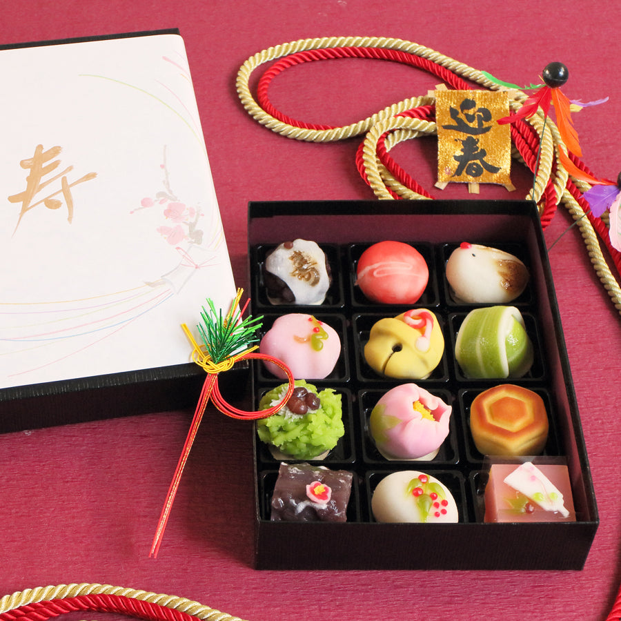 砂糖、小豆、白いんげん、餅粉、薯蕷芋、水飴、寒天、寒梅粉、卵白、卵黄(原材料に卵を含む)/着色料(クチナシ青・黄、赤色3号・106号、青色1号、黄色4号)